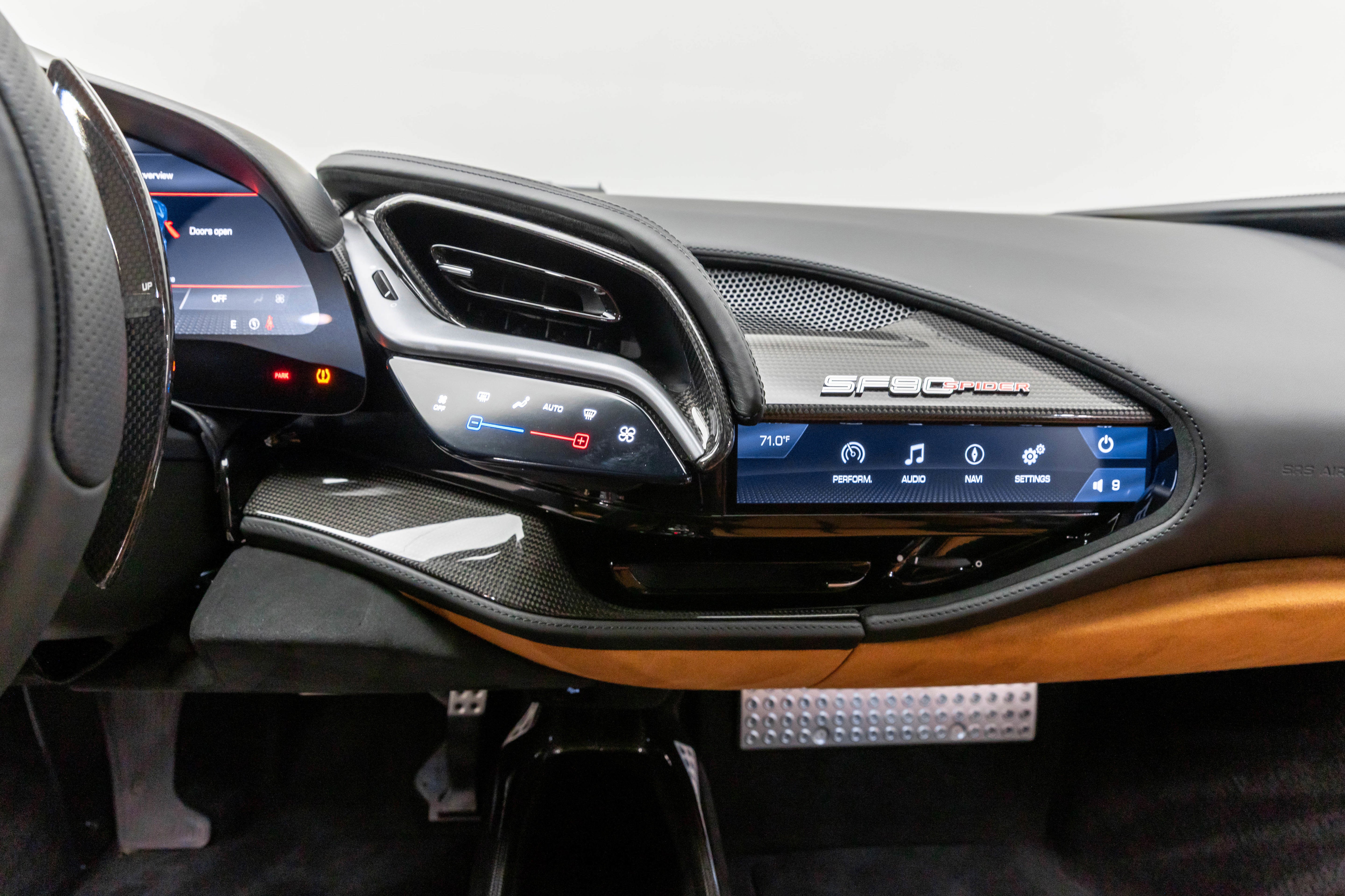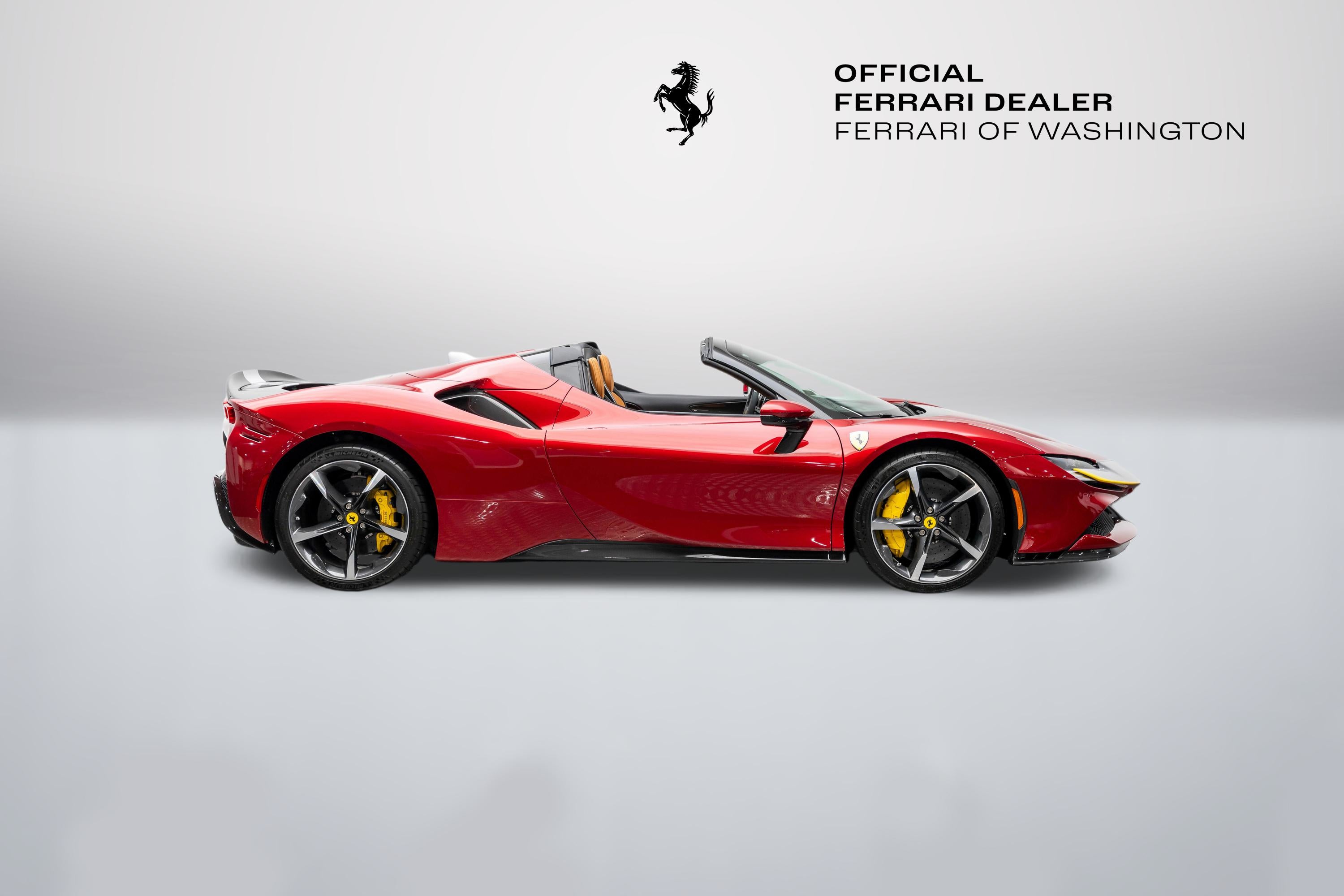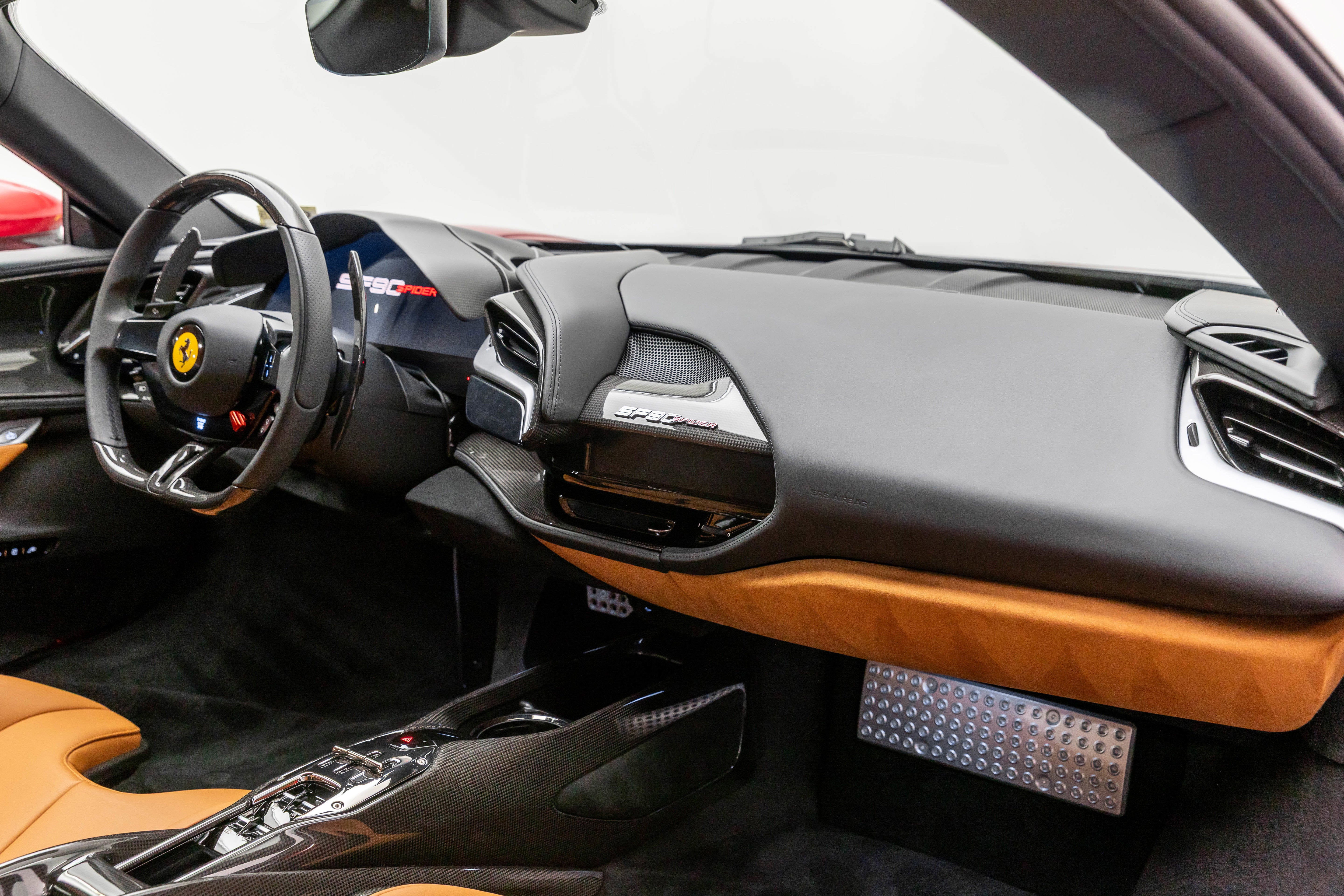 Ferrari Maserati of Washington is pleased to offer you this Ferrari SF90 Spider . Our team strives to make each experience here at Ferrari Maserati of Washington the best possible, so here are a few key components of this vehicle. This SF90 Spider is covered in Rosso Coburn exterior paint with Cuoio interior. Ferrari equipped this SF90 Spider with many options including: Ferrari Approved Certified, ABS brakes, Alloy wheels, Compass, Electronic Stability Control, Heated door mirrors, Illuminated entry, Leather Seat Trim, Low tire pressure warning, Navigation System, Remote keyless entry, Traction control, 4-Wheel Disc Brakes, 6 Speakers, Adaptive suspension, Air Conditioning, AM/FM radio, AM/FM Stereo, Apple CarPlay, Automatic temperature control, Brake assist, Bumpers: body-color, Ceramic disc brakes: front and rear, Convertible HardTop, Convertible roof lining, Convertible roof wind blocker, Delay-off headlights, Driver door bin, Dual front impact airbags, Dual front side impact airbags, Exterior Parking Camera Rear, Four wheel independent suspension, Front anti-roll bar, Front Bucket Seats, Front Center Armrest, Front reading lights, Fully automatic headlights, Glass rear window, Heads-Up Display, Integrated roll-over protection, Leather steering wheel, Outside temperature display, Overhead console, Passenger cancellable airbag, Passenger door bin, Power convertible roof, Power door mirrors, Power driver seat, Power passenger seat, Power steering, Power windows, Radio data system, Rain sensing wipers, Rear anti-roll bar, Rear fog lights, Rear Parking Sensors, Rear window defroster, Security system, Speed control, Speed-sensing steering, Spoiler, Sport steering wheel, Standard Seats, Steering wheel mounted audio controls, Tachometer, Telescoping steering wheel, Tilt steering wheel, Trip computer, Variably intermittent wipers, Voltmeter, and Wheels: 20" x 9.5" Fr & 20" x 11.5" Rr. Odometer is 508 miles below market average! We are conveniently located only 6 miles from Dulles International Airport in beautiful Sterling, VA.