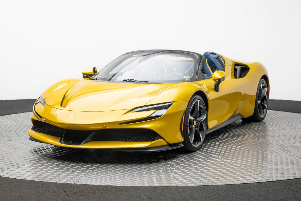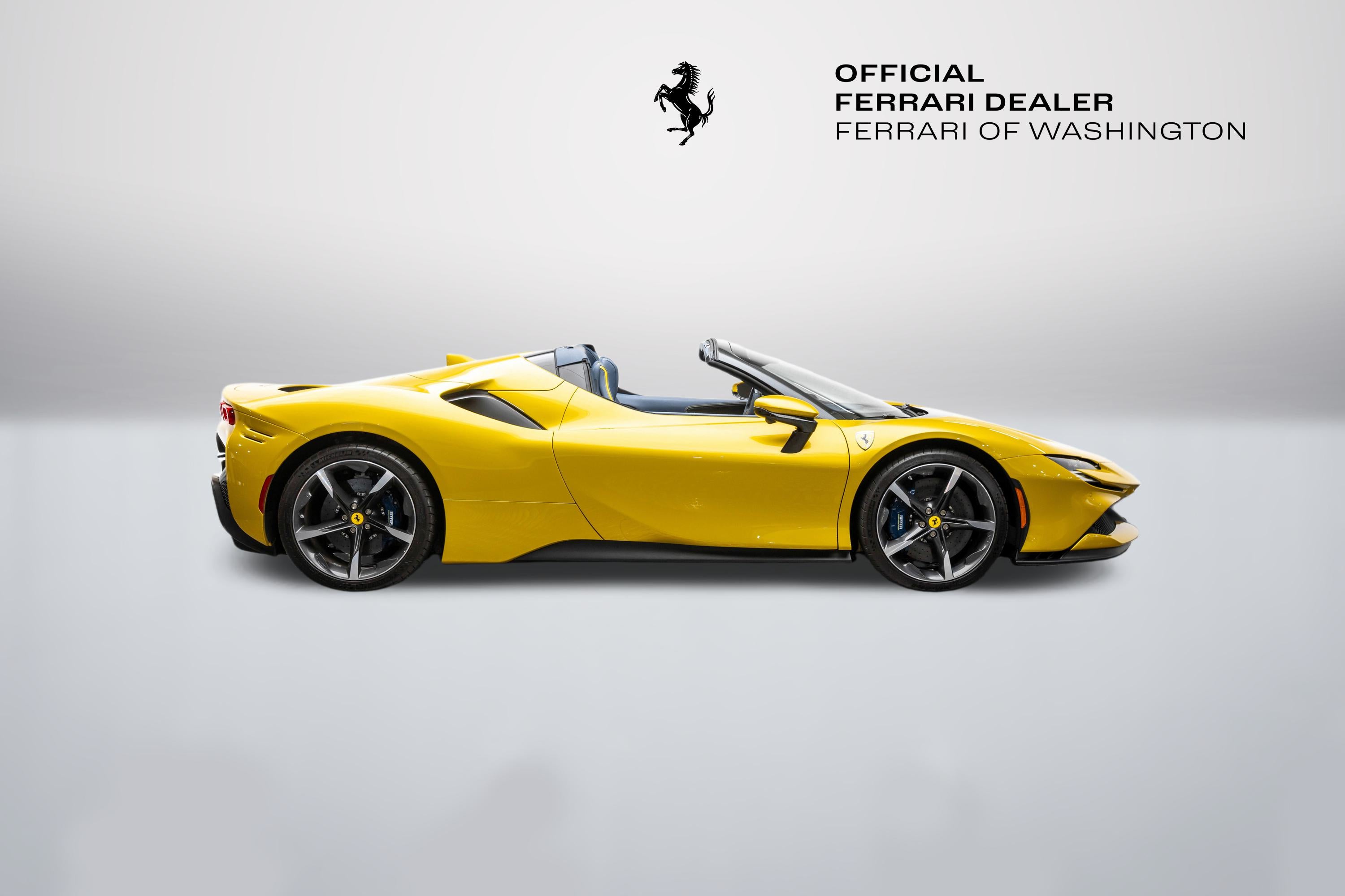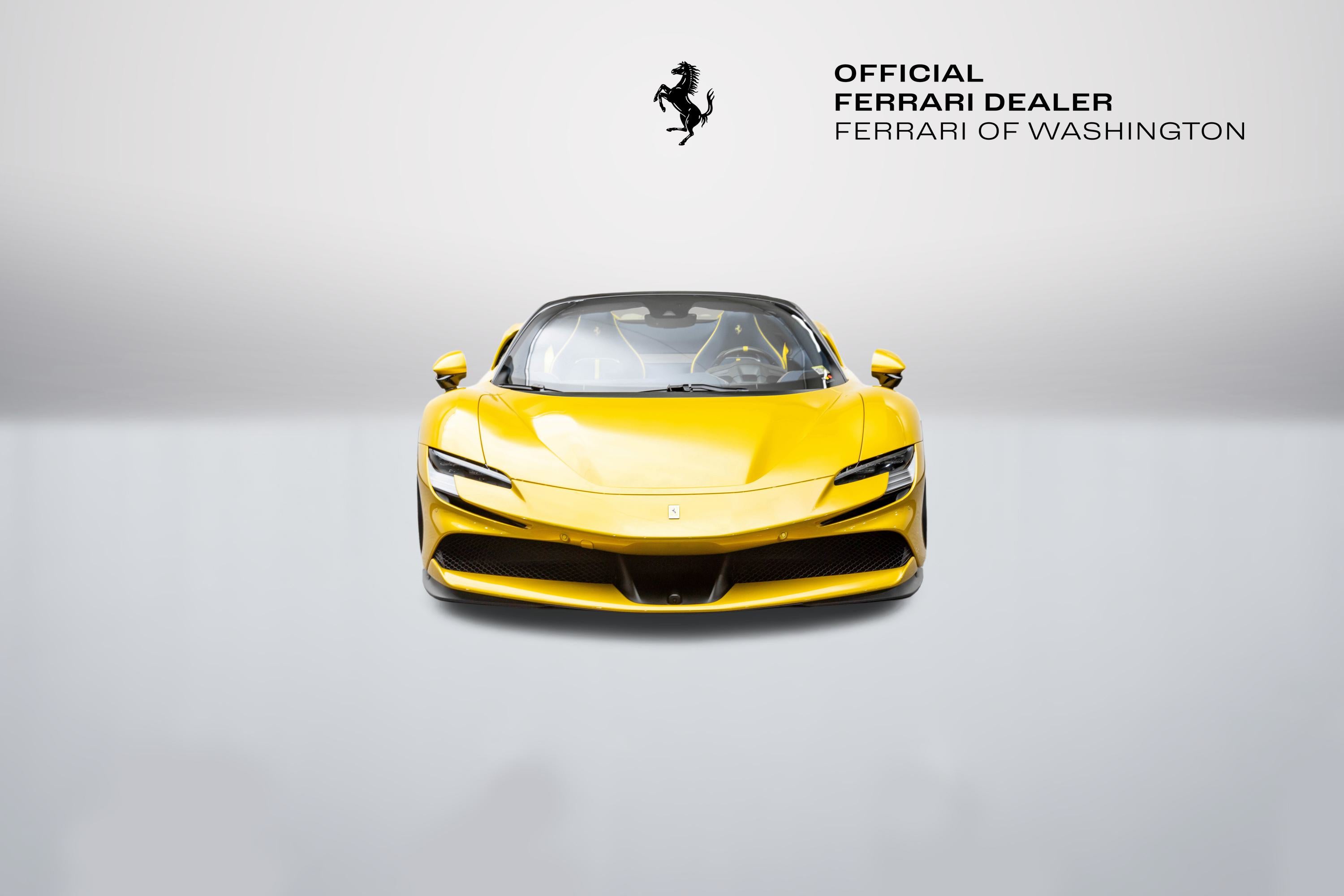 Ferrari Maserati of Washington is pleased to offer you this Ferrari SF90 Spider . Our team strives to make each experience here at Ferrari Maserati of Washington the best possible, so here are a few key components of this vehicle. This SF90 Spider is covered in Giallo Montecarlo exterior paint with Blu Medio interior. Ferrari equipped this SF90 Spider with many options including: Ferrari Approved Certified, ABS brakes, Alloy wheels, Compass, Electronic Stability Control, Heated door mirrors, Illuminated entry, Leather Seat Trim, Low tire pressure warning, Navigation System, Remote keyless entry, Traction control, 4-Wheel Disc Brakes, 6 Speakers, Adaptive suspension, Air Conditioning, AM/FM radio, AM/FM Stereo, Apple CarPlay, Automatic temperature control, Brake assist, Bumpers: body-color, Ceramic disc brakes: front and rear, Convertible HardTop, Convertible roof lining, Convertible roof wind blocker, Delay-off headlights, Driver door bin, Dual front impact airbags, Dual front side impact airbags, Exterior Parking Camera Rear, Four wheel independent suspension, Front anti-roll bar, Front Bucket Seats, Front Center Armrest, Front reading lights, Fully automatic headlights, Glass rear window, Heads-Up Display, Integrated roll-over protection, Leather steering wheel, Outside temperature display, Overhead console, Passenger cancellable airbag, Passenger door bin, Power convertible roof, Power door mirrors, Power driver seat, Power passenger seat, Power steering, Power windows, Radio data system, Rain sensing wipers, Rear anti-roll bar, Rear fog lights, Rear Parking Sensors, Rear window defroster, Security system, Speed control, Speed-sensing steering, Spoiler, Sport steering wheel, Standard Seats, Steering wheel mounted audio controls, Tachometer, Telescoping steering wheel, Tilt steering wheel, Trip computer, Variably intermittent wipers, Voltmeter, and Wheels: 20" x 9.5" Fr & 20" x 11.5" Rr. CARFAX One-Owner. Odometer is 639 miles below market average! We are conveniently located only 6 miles from Dulles International Airport in beautiful Sterling, VA.