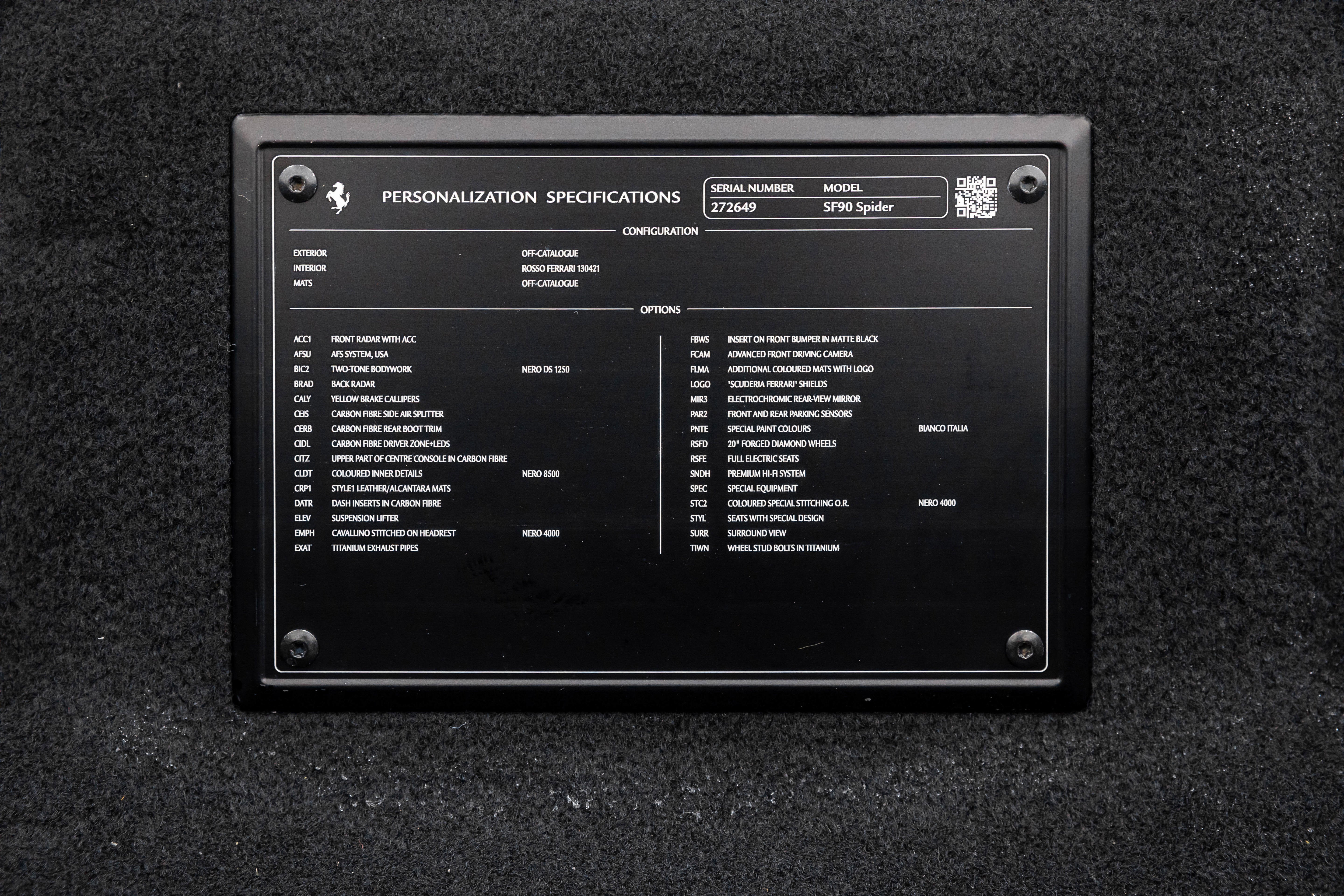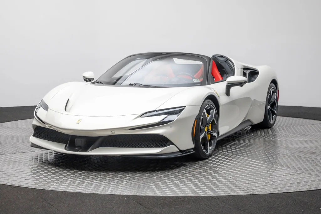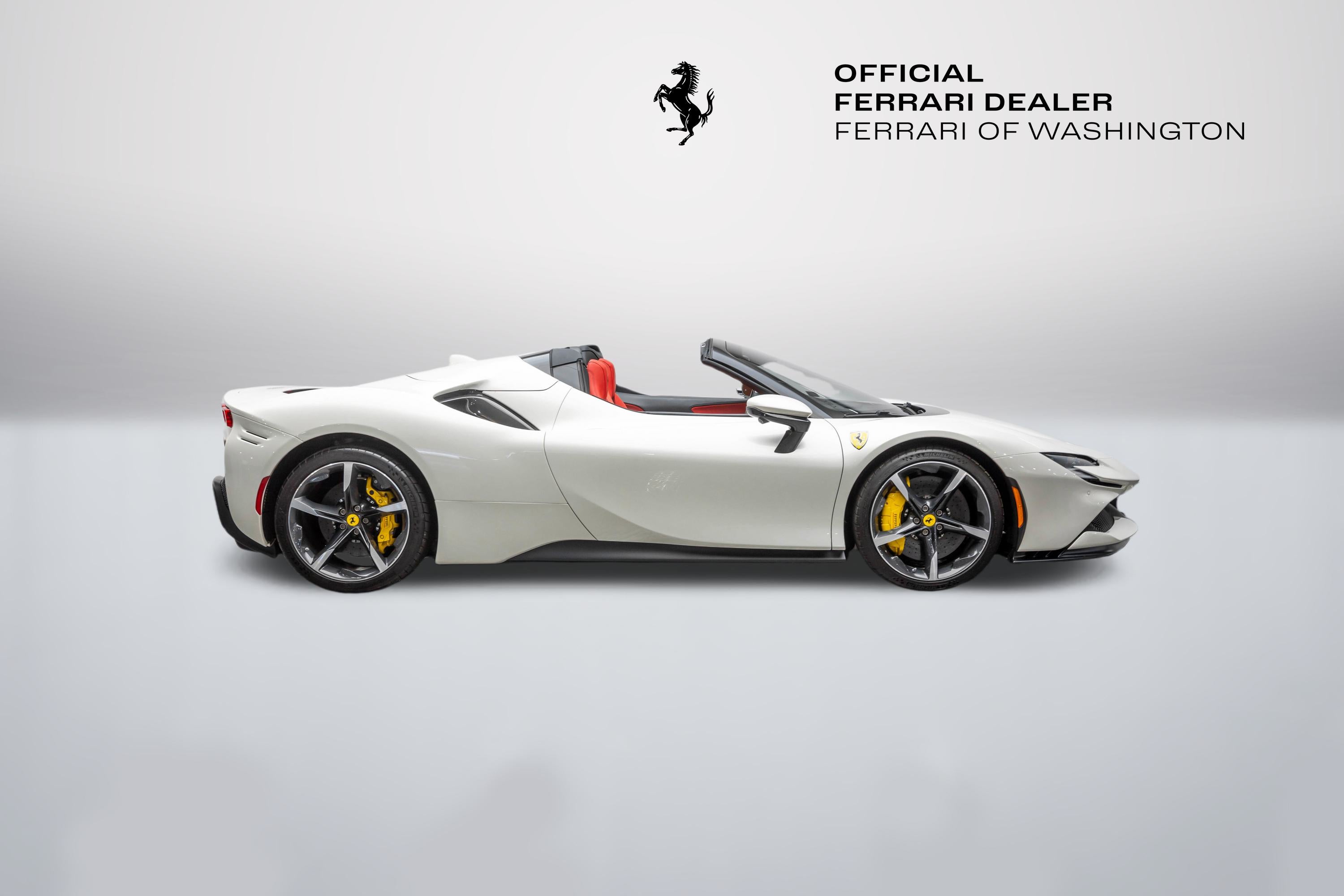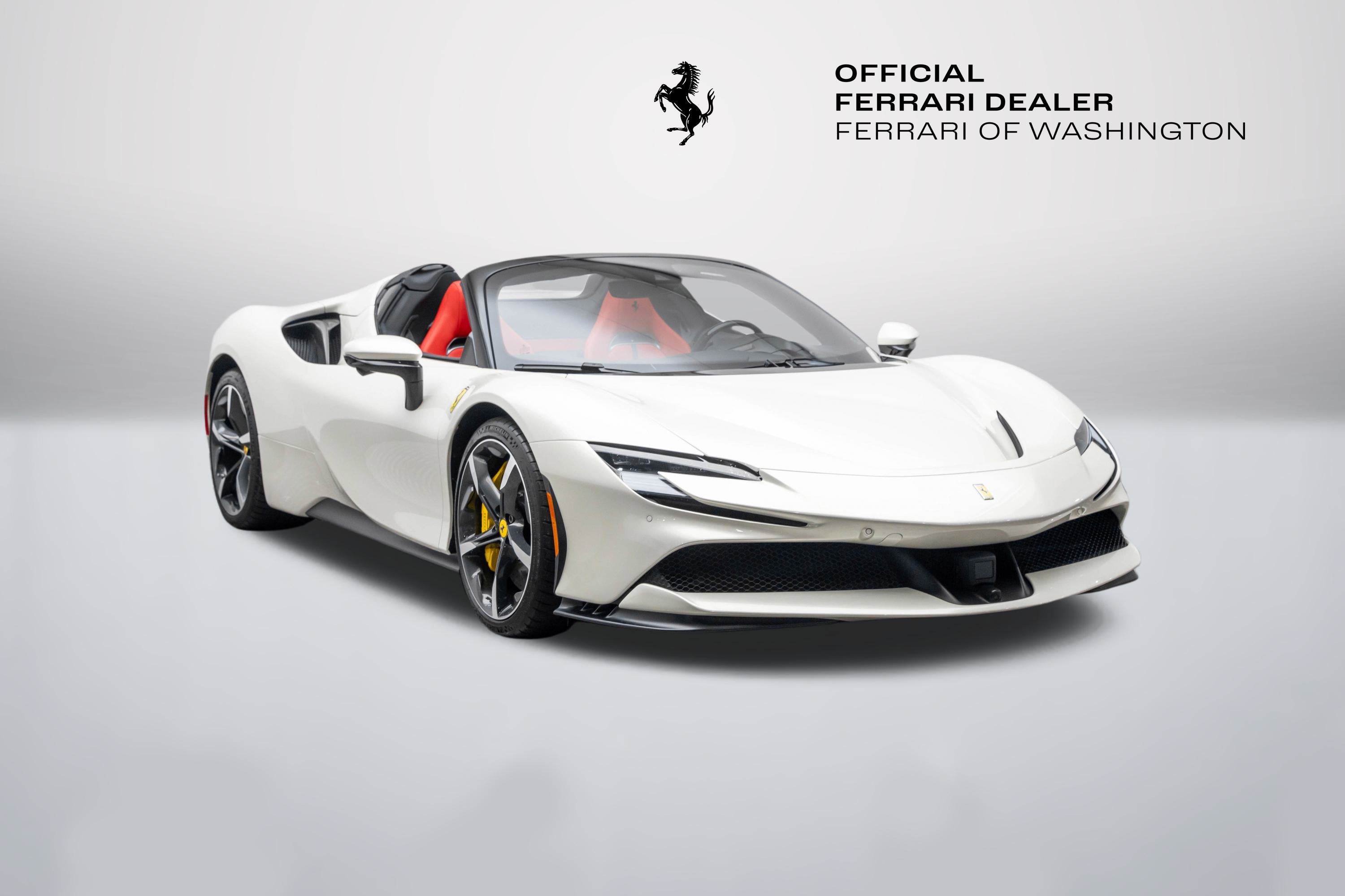 Ferrari Maserati of Washington is pleased to offer you this Ferrari SF90 Spider . Our team strives to make each experience here at Ferrari Maserati of Washington the best possible, so here are a few key components of this vehicle. This SF90 Spider is covered in Bianco Italia exterior paint with Rosso Ferrari interior. Ferrari equipped this SF90 Spider with many options including: Ferrari Approved Certified, ABS brakes, Alloy wheels, Compass, Electronic Stability Control, Heated door mirrors, Illuminated entry, Leather Seat Trim, Low tire pressure warning, Navigation System, Remote keyless entry, Traction control, 4-Wheel Disc Brakes, 6 Speakers, Adaptive suspension, Air Conditioning, AM/FM radio, AM/FM Stereo, Apple CarPlay, Automatic temperature control, Brake assist, Bumpers: body-color, Ceramic disc brakes: front and rear, Convertible HardTop, Convertible roof lining, Convertible roof wind blocker, Delay-off headlights, Driver door bin, Dual front impact airbags, Dual front side impact airbags, Exterior Parking Camera Rear, Four wheel independent suspension, Front anti-roll bar, Front Bucket Seats, Front Center Armrest, Front reading lights, Fully automatic headlights, Glass rear window, Heads-Up Display, Integrated roll-over protection, Leather steering wheel, Outside temperature display, Overhead console, Passenger cancellable airbag, Passenger door bin, Power convertible roof, Power door mirrors, Power driver seat, Power passenger seat, Power steering, Power windows, Radio data system, Rain sensing wipers, Rear anti-roll bar, Rear fog lights, Rear Parking Sensors, Rear window defroster, Security system, Speed control, Speed-sensing steering, Spoiler, Sport steering wheel, Standard Seats, Steering wheel mounted audio controls, Tachometer, Telescoping steering wheel, Tilt steering wheel, Trip computer, Variably intermittent wipers, Voltmeter, and Wheels: 20" x 9.5" Fr & 20" x 11.5" Rr. CARFAX One-Owner. Odometer is 635 miles below market average! We are conveniently located only 6 miles from Dulles International Airport in beautiful Sterling, VA.